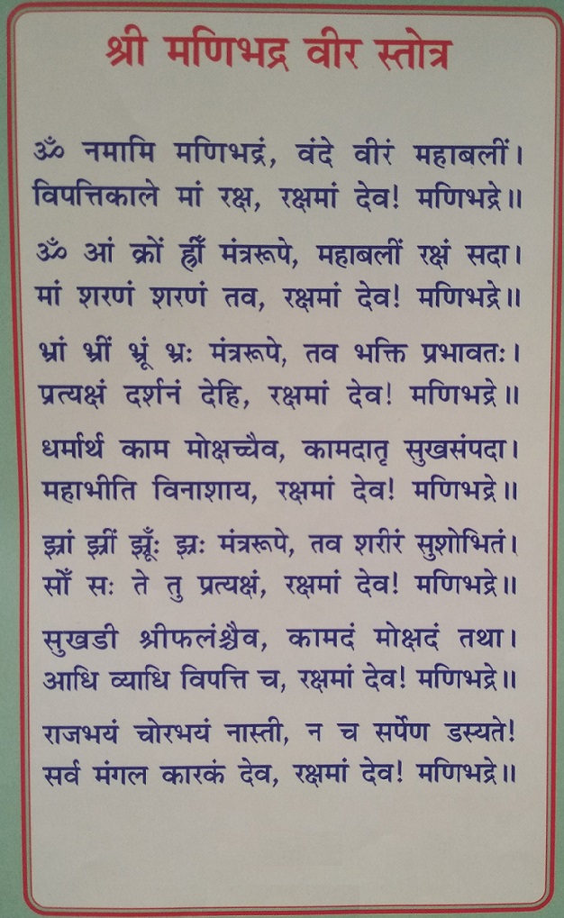 सर्व मंगल कारकं देव, रक्षमां देव! मणिभद्रे।।